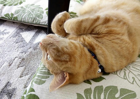 嬉しそうに爪を引っ掛けてぶら下がっていた。