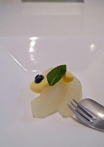 南瓜にアラレをまぶして揚げ、あんかけにした南瓜饅頭。