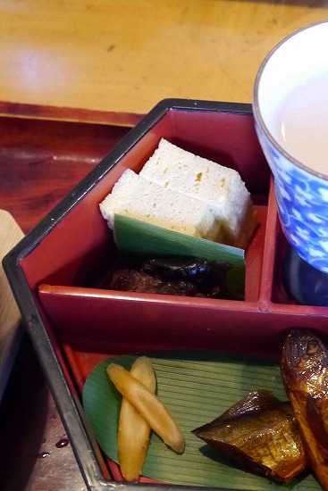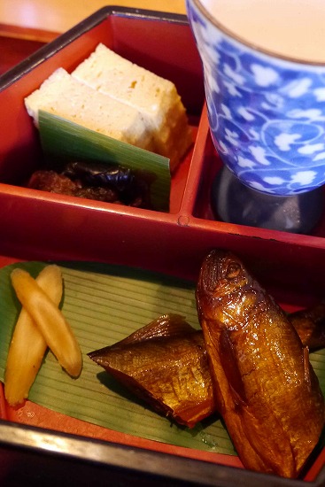 ヤマゴボウの味噌漬けと川魚(鱒かな?)の甘露煮。