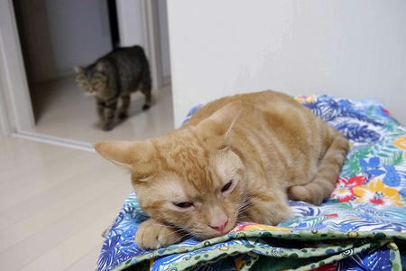 猫たちは、朝方の風雨が強い時に