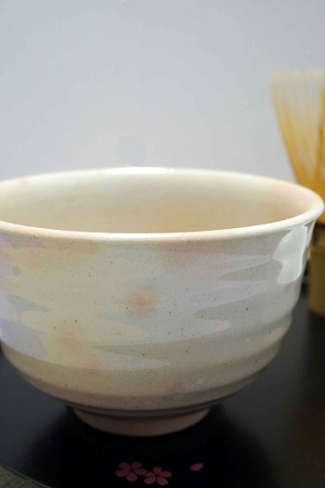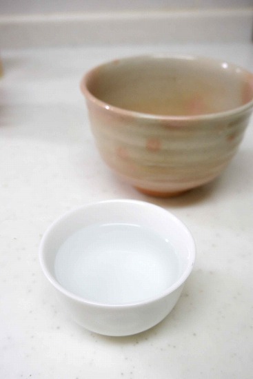 まず、お湯を抹茶茶碗に少し注ぎ