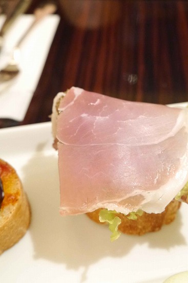 プリーツレタスと生ハムをのせたもの。
