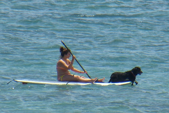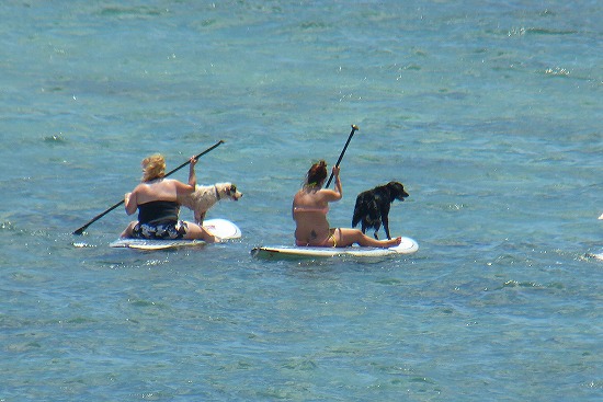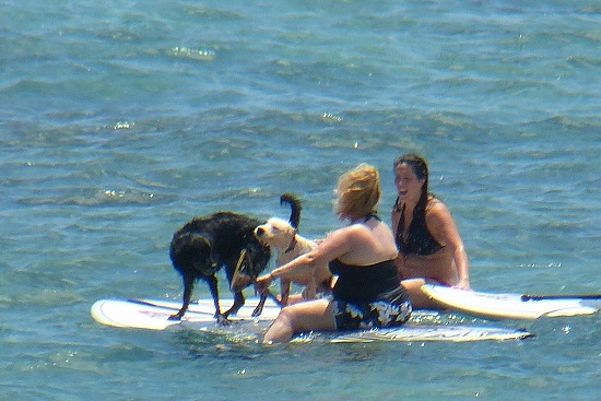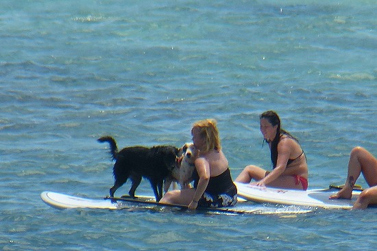 そして、また元のパートナーのボードに戻った犬を乗せて
