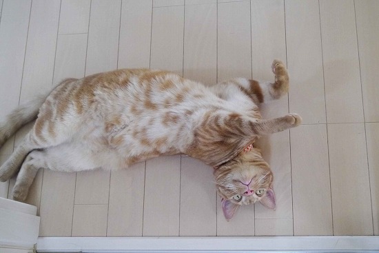 天井を向いて転がり、どうしていいかわからない顔をして