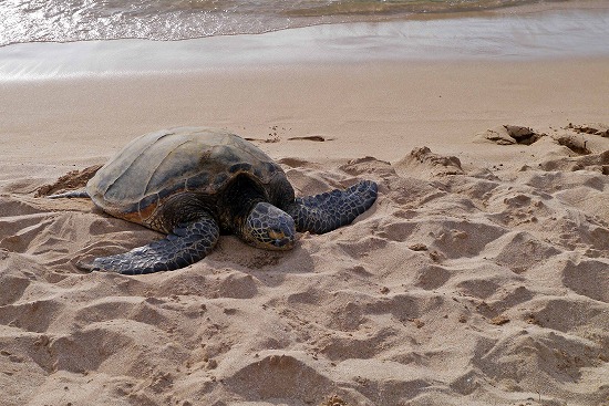 ウミガメのいるビーチを通って行く。