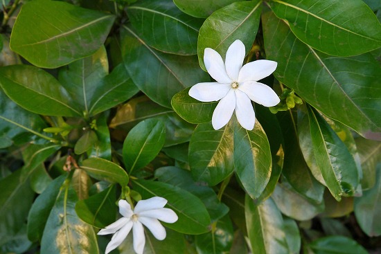 日本の梔子とは花びらの形が違う。