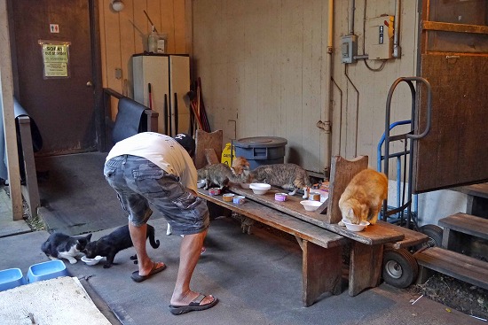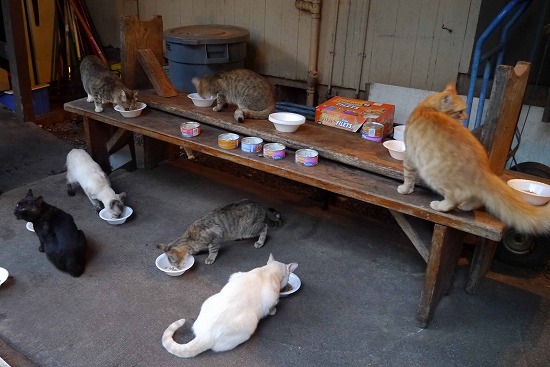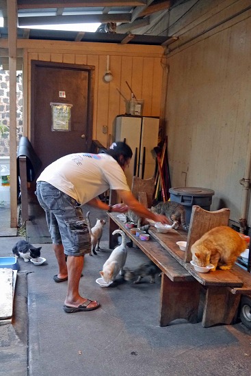 話しながらも、猫にフードを与える手は一時も休めない。