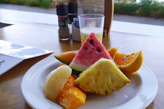 朝食の後は、午前中の暑くなりきらない陽の中を