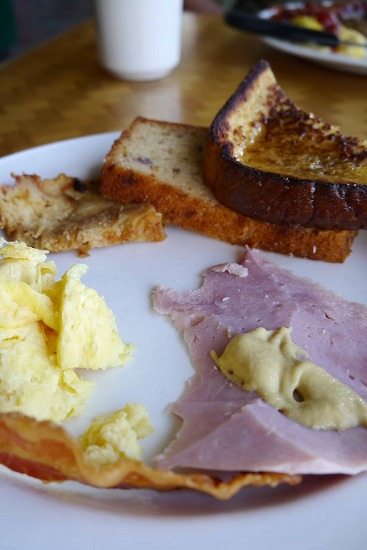 (写真はカイルアのシナモンズ、グアバソースのパンケーキ)