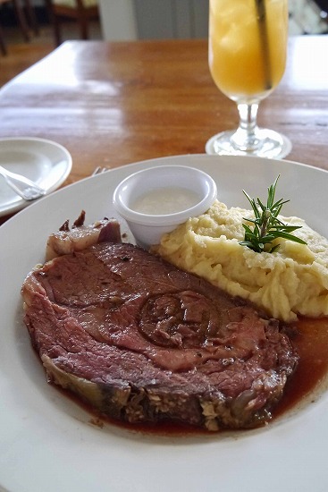 グレィヴィのたっぷりかかったプライム・リブ・ステーキに添えられているのは