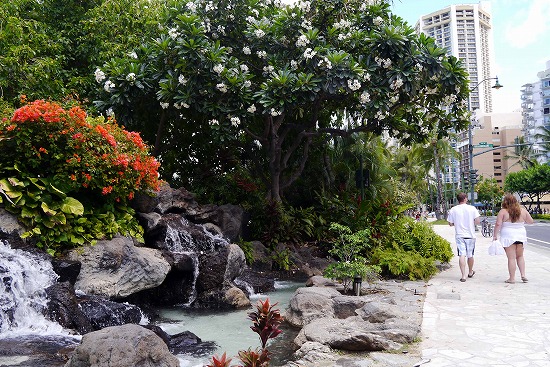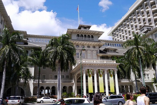 途中、ワイキキの貴婦人と言われる白亜のホテルの前を通り