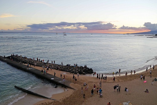 ワイキキに戻り、暑さの収まったビーチに出る。