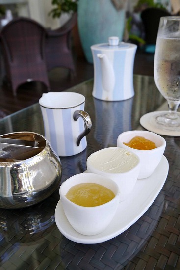 クロテッド・クリーム、パイナップルと、ジンジャーマンゴージャム。