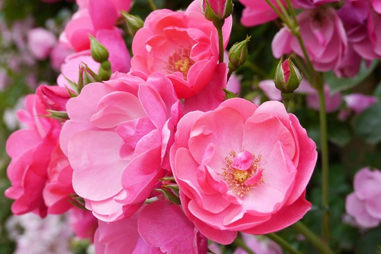 小さい花をたくさん付けて群生するつるばらは