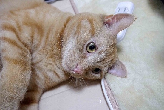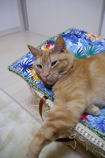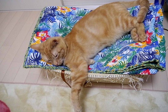 少し暑くなってきたので、夜はフローリングの上で涼む。