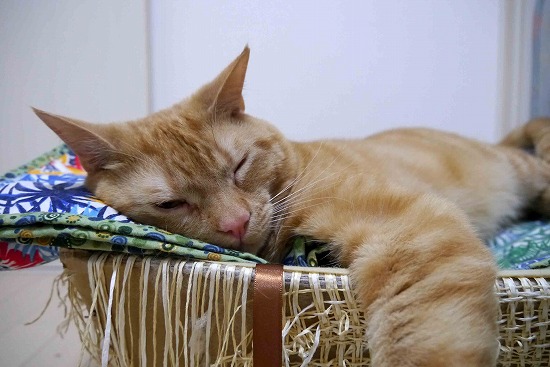 遊び疲れると、彼の「作品」の上で寝る。