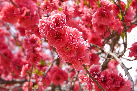 赤い花桃は迫力がある。