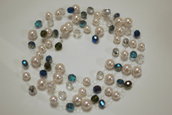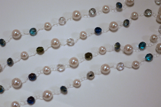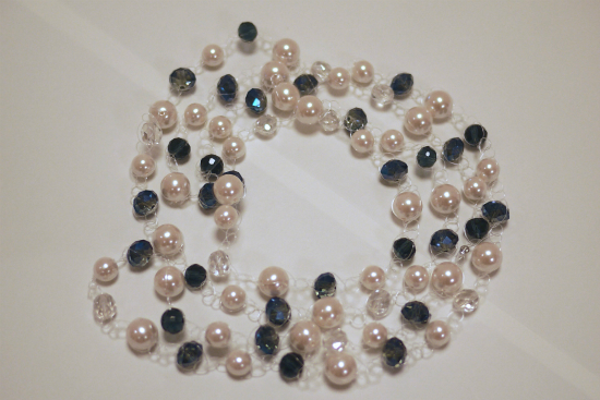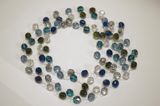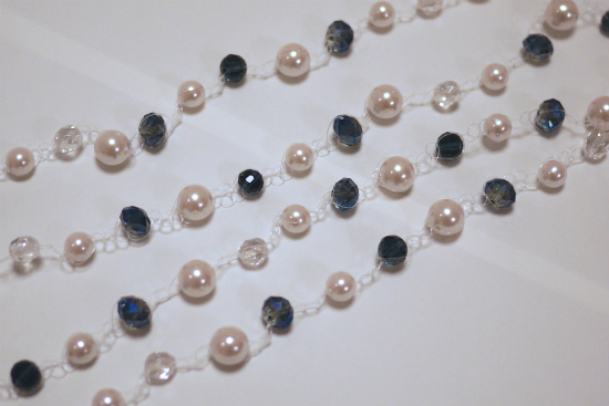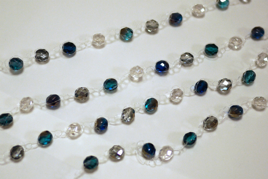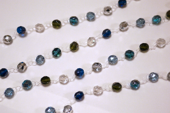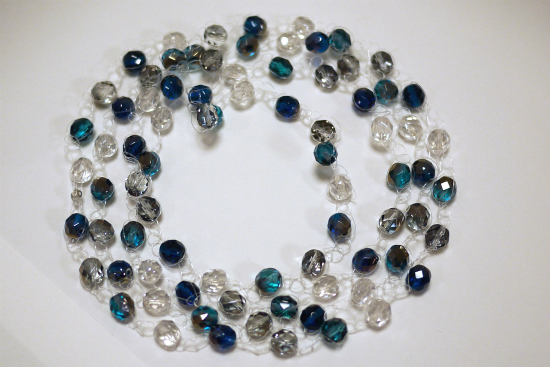 白色彩加工をしたクリスタルとブルー、シルバーメタリック加工のビーズを使用。