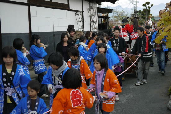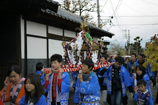 男の子は葡萄の飾りのついたお神輿を担ぐ。