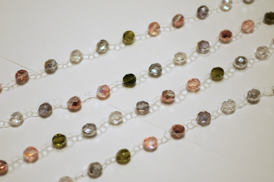 クリスタルにオーロラ加工をしたビーズを使用。