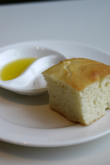 サーヴィスのフォッカッチャとオリーヴオイル。(と岩塩)