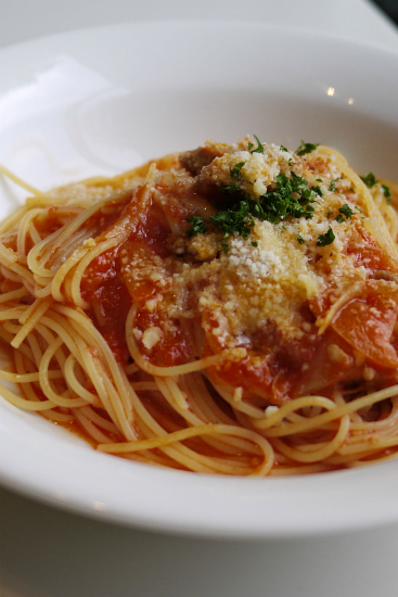 パスタの茹で加減は、これぞアル・デンテだ、と