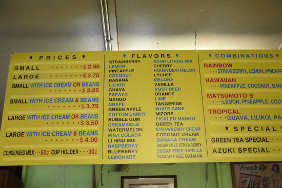 シロップを迷う向きには、レインボウ、ハワイアン、マツモトなどの