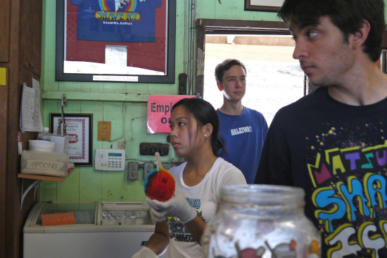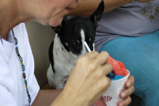 犬も一緒に並んで、シェイブ・アイスにありつく。