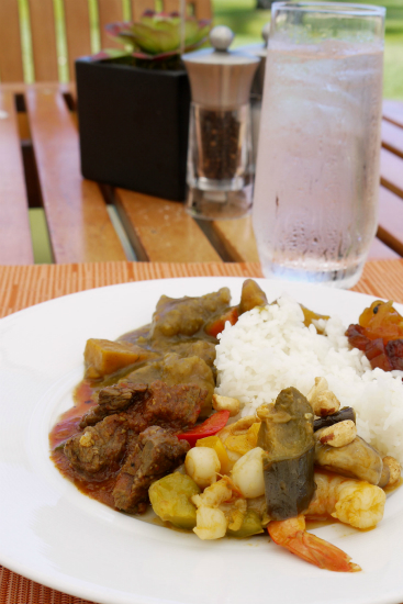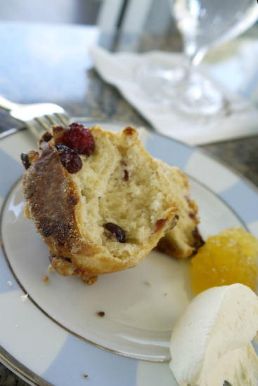アフタヌーン・ティはフロントの横、ヴェランダで。