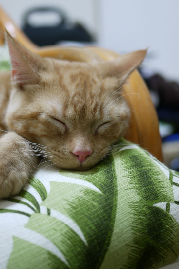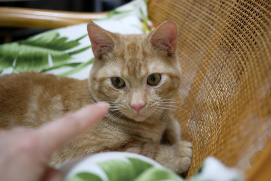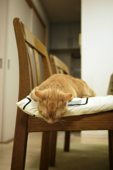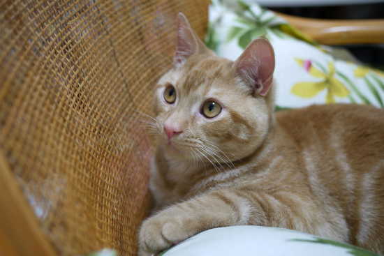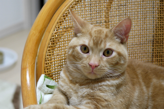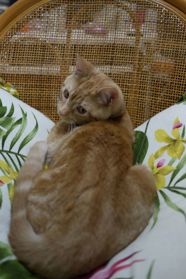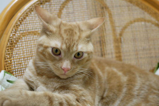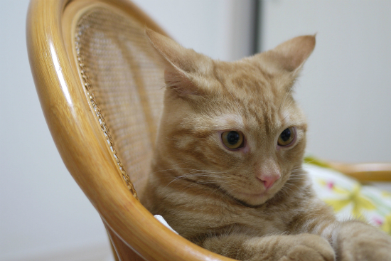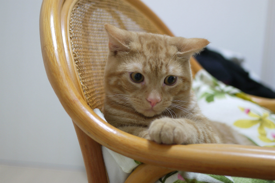 茶色の猫が藤の椅子に座る(?)と雰囲気がでる。