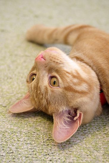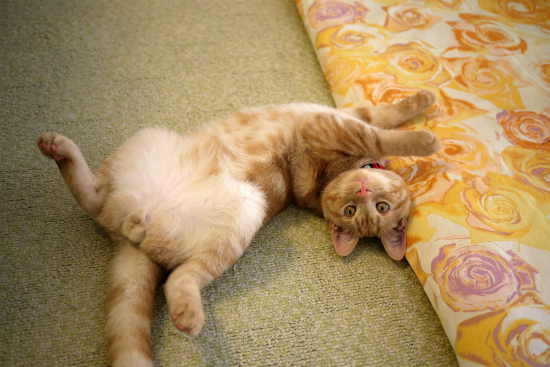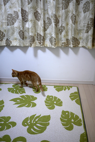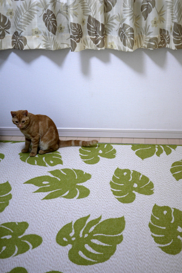 ところで、この猫の毛色にグリーンのラグは