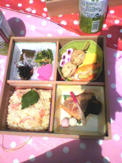 山椒の葉を飾ったちらし寿司のようなものが入っていて