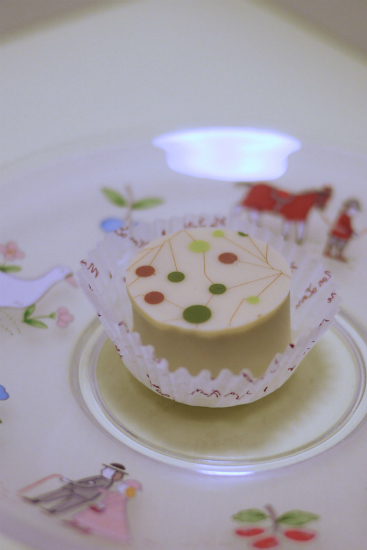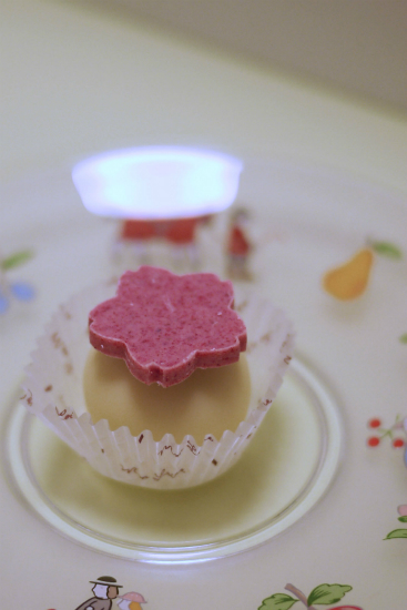 ホワイトチョコレートの中は桜風味のガナッシュ。