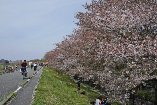 多摩川の桜は、今年はこれで見納めかな、という感じ。