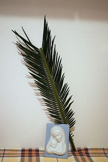 この日、教会ではひとりひとりに棕櫚の枝が配られ