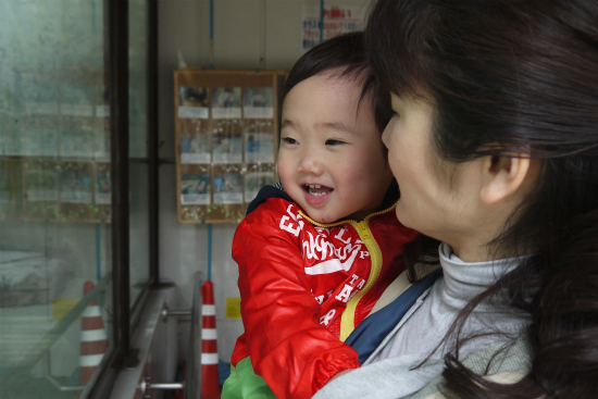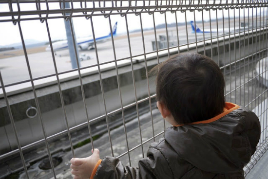 私との別れを惜しみ、送迎デッキの金網にしがみつくカオル。