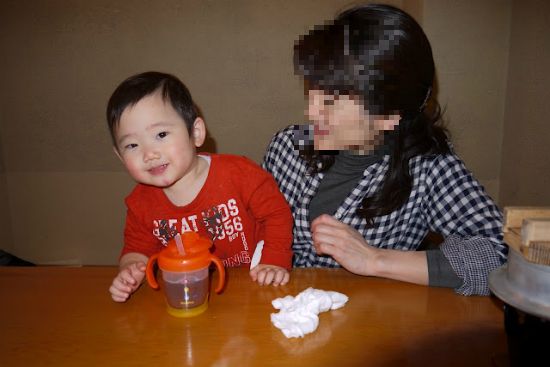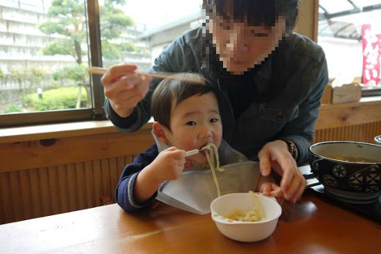 カオルは半年前より上手に、いい子でうどんを食べる。
