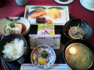 焼き魚と貝の味噌汁が美味しい。