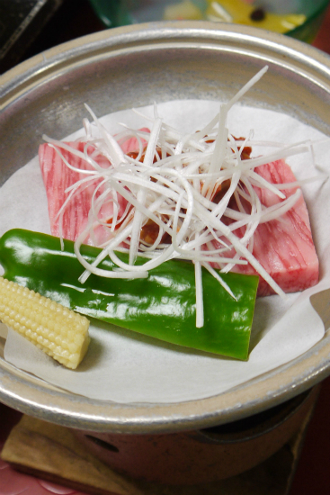 伊予牛を金山寺味噌で食べる。