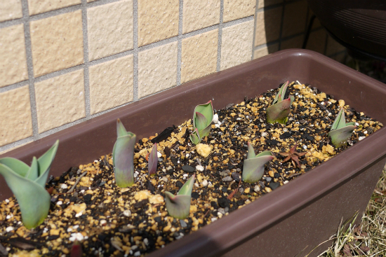ようやくチューリップの芽が出揃った。