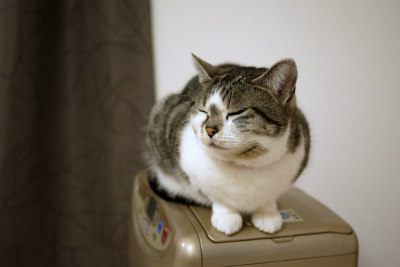 ファンヒーターの上で猫が気持ち良さそうにしていた。