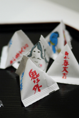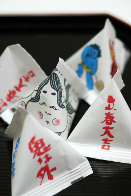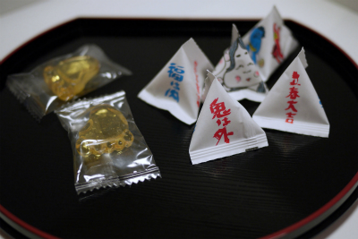普通の鬼打豆とセットで、紅白の砂糖衣がかかった大豆だったり