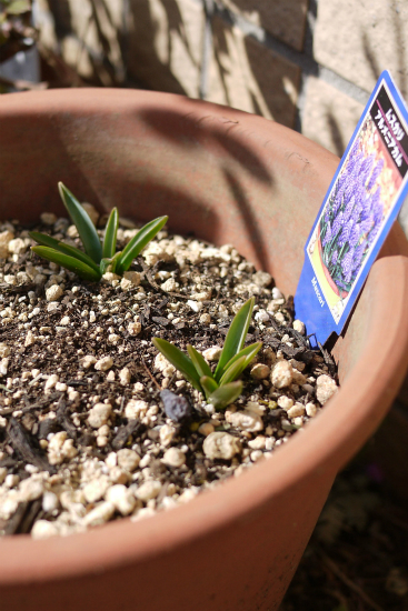 ムスカリの球根ばかり、10個植えた鉢は