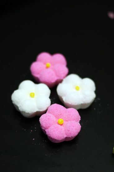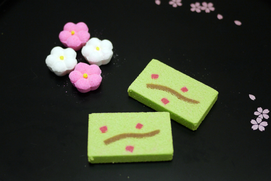 色どりも愛らしい梅をかたどった落雁。
