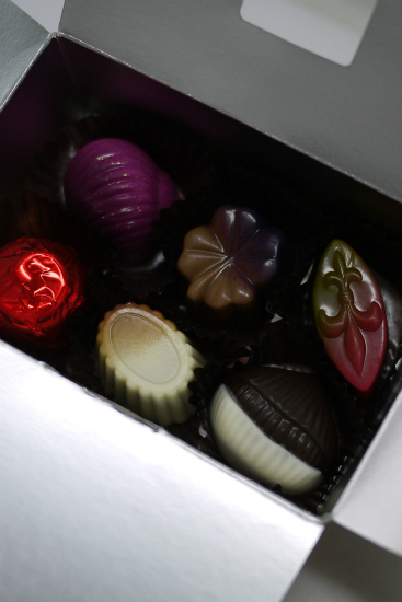 美しくも美味しいチョコレートが並ぶ。