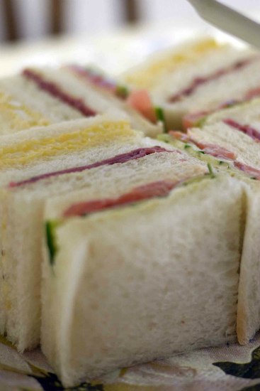 私たちはスコーンを食べすぎて、お腹がいっぱいになり、