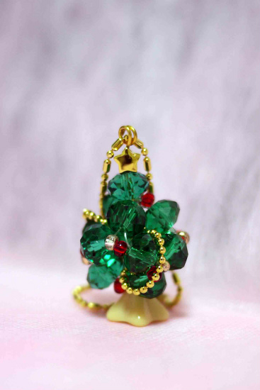 ボタンカットビーズでクリスマス・ツリーを作った。