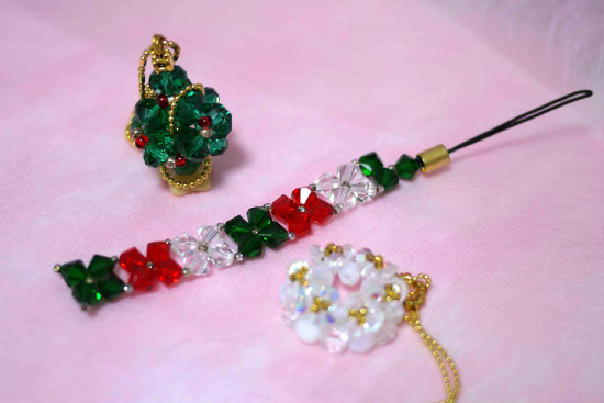クリスマス・カラーのグリーンと赤のビーズは