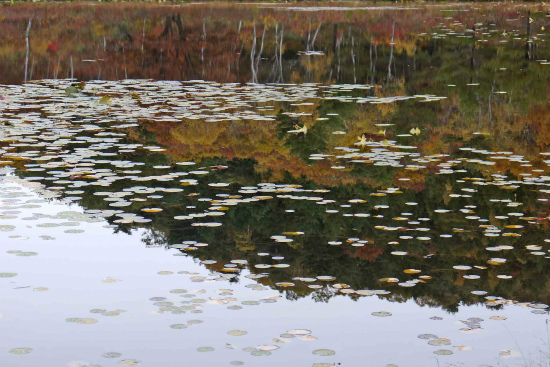 一沼の水面に映っている黄葉
