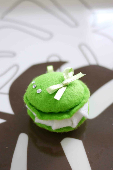 フェルトと同系色のリボンを付け